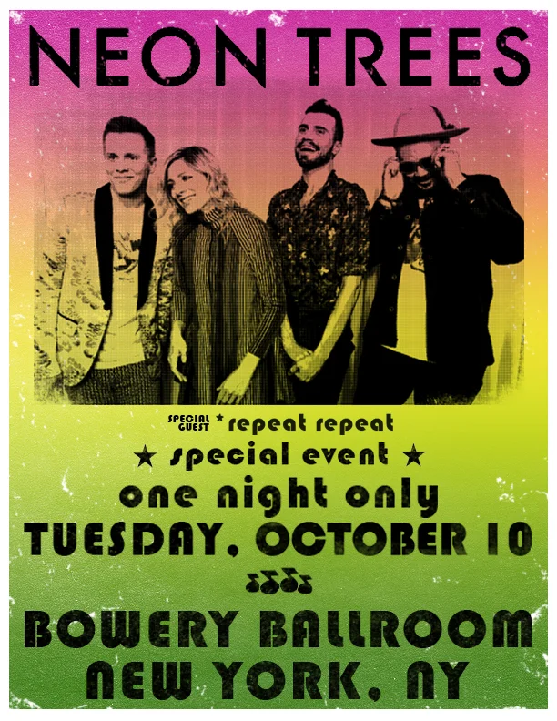Shows: *repeat repeat with NEON TREES at Bowery Ballroom *repeat repeat to open for NEON TREES October 10th ShowsApple RoadOctober 3, 2017 Facebook0 Twitter Reddit Tumblr Pinterest0 0 Likes
